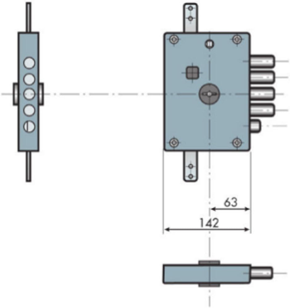 - Cerradura de embutir de llave de gorja para puertas acorazadas de Dierre.